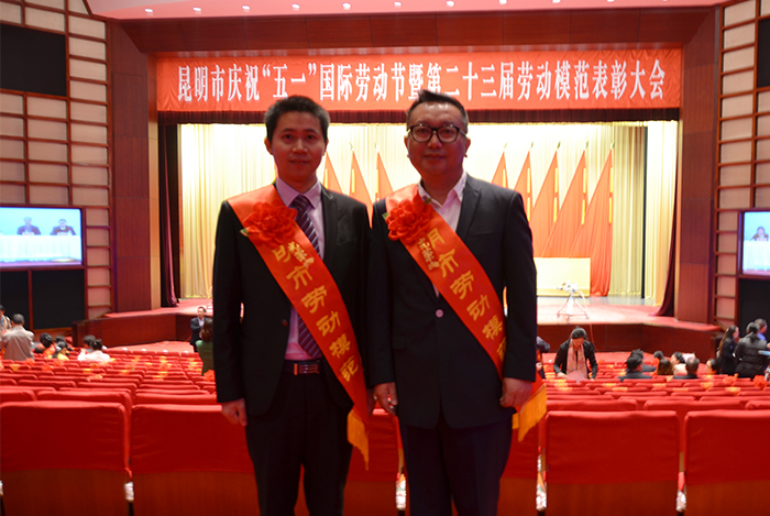 4月28日,昆明市召开庆祝“五一”国际劳动节暨第二十三届劳动模范表彰大会。德赢官网荣获昆明市第二十三届劳动模范的化学科学与技术系梁德强和音乐学院鲁林在会上接受了表彰。