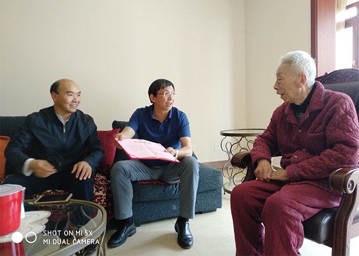 马银海副校长和城建学院负责人一行,来到呈贡大学城书香大地饶英伟教授住地,探望并感谢他心系学校发展捐书助学的好意,向饶英伟颁发了捐赠图书证书,愿饶老保重身体,健健康康安度晚年。马副校长要求城建学院好好保存图书,除了供读者借阅外,也要作为一笔精神财富加以珍藏。