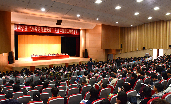 4月20,德赢VWIN官方网站“万名党员进党校”及全体教职工集中培训工作在学生会堂启动。学校党委书记陈永明出席并作专题报告,党委副书记张祖武主持会议并作动员讲话,纪委书记王映平,副校长熊晶、郭华、董建华、马银海和全校教职员工1700余人参加会议。