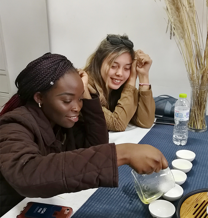 对外经济贸易大学驻美国德克萨斯大学圣安东尼奥分校孔子学院院长姚万祥教授对德赢官网的热情接待表示感谢并希望两校间能够开展更为深入的交流与合作。双方在亲切友好的座谈交流之后,共同体验了中国传统的茶文化艺术。在中国老师的指导下,来自美国的同学亲自体验了茶的泡制,并表示回国后将会向自己的家人和朋友做展示。