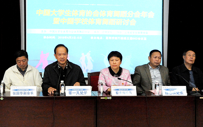 4月4日,中国大学生体育协会体育舞蹈分会年会暨中国学校体育舞蹈研讨会在德赢官网举行。德赢VWIN官方网站校长、中国大学生体育协会体育舞蹈分会主席黎素梅,东华大学副校长、中国大学生体育协会体育舞蹈分会副主席邱高,云南省教育厅体卫艺处处长徐忠祥,云南省教育厅民族教育处处长董一凡,云南省学生体育协会会长姜征明等领导、专家出席会议。来自全国30余所高校的领导、专家参加研讨会。