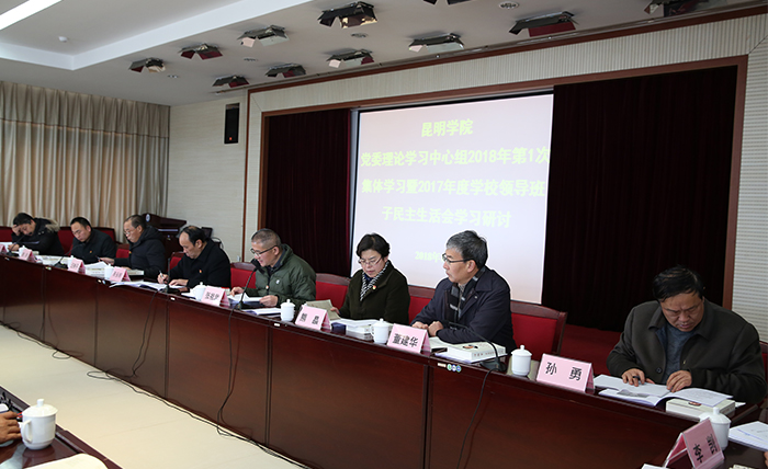 1月11日,学校党委理论学习中心组举行2018年第1次集体学习暨2017年度领导班子民主生活会学习研讨,进一步深入研学党的十九大精神、习近平新时代中国特色社会主义思想和《习近平谈治国理政》第二卷,传达学习习近平总书记1月5日在新进中央委员会的委员、候补委员和省部级主要领导干部学习贯彻习近平新时代中国特色社会主义思想和党的十九大精神研讨班开班式上的重要讲话精神,传达学习“加强和改进高校思想政治工作座谈会”精神。强调,坚持用习近平新时代中国特色社会主义思想武装头脑、指导实践、推动工作,把立德树人根本任务抓在手上扛在肩上,以永不懈怠的精神状态和一往无前的奋斗姿态,拥抱新时代、践行新思想、实现新作为。 学校党委书记陈永明主持会议并作总结讲话,学校党委委员、非中共党员校领导、副校级领导参加集体学习,学校各单位党、政主要负责人列席学习会。