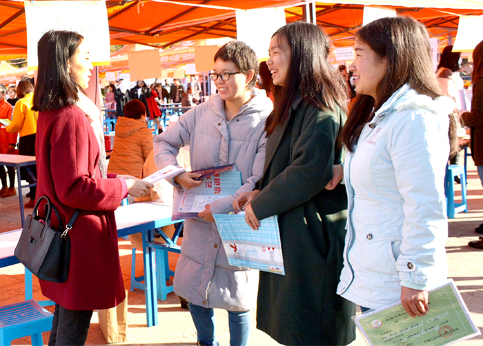 12月22日,由云南省教育厅主办,云南省大中专毕业生就业服务中心、德赢VWIN官方网站、文山学院共同承办的云南省2018届综合类院校毕业生双向选择洽谈会在德赢官网聂耳广场举行。德赢官网党委书记陈永明,校长黎素梅,副校长郭华、马银海到现场了解情况并指导工作。 各地州(市)教育局(就业局)、昆明市、各县(市、区)教育局;经开区就业局、高新区就业局、五华区就业局、盘龙区就业局、西山区就业局、官渡区就业局相关领导、文山学院招就处负责人及在昆各兄弟院校就业部门负责人参加了招聘会。 此次招聘会共有436家用人单位到现场进行招聘,到场招聘的单位和企业涉及高新技术、酒店、餐饮、建筑、文化、卫生、教育等多个领域,提供就业岗位8427个,现场投档数3172份,基本达成就业协议数580余份。 此次招聘会是地州高校首次在昆明与在昆高校联合举办,不仅有在昆高校学生,还有来自文山等州市的学生参加。充分发挥了平台、资源作用,拓宽了供需双方的选择空间,形成省与地州高校联动招聘格局。在招聘会现场,举办方还设置了宣传栏,向求职学生介绍《劳动合同法》、《就业促进法》等就业政策法规,让参加就业招聘的学生及时了解国家新出台的相关法律法规知识。
