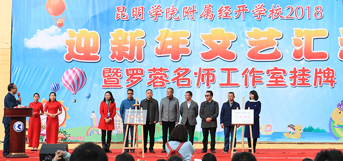 12月29日,德赢官网附属经开学校举行了“2018迎新年文艺汇演暨罗蓉名师工作室挂牌”仪式,党委副书记张祖武,副校长郭华出席了挂牌仪式。云南省教育厅师范处雷韬处长、昆明市教育局龚利春副局长、昆明市教育局高中教育处王建方处长、昆明经济技术开发区社会事业局党委李建华书记、昆明经济技术开发区教育局陆文龙局长、德赢官网相关职能部门党政领导、昆明经济技术开发区各兄弟学校的党政领导、学生家长参加并见证揭牌仪式。仪式由附属学校校长李晋德主持。
