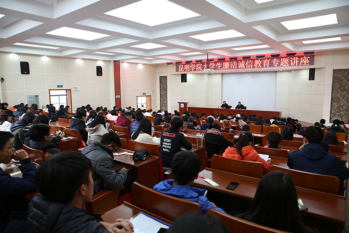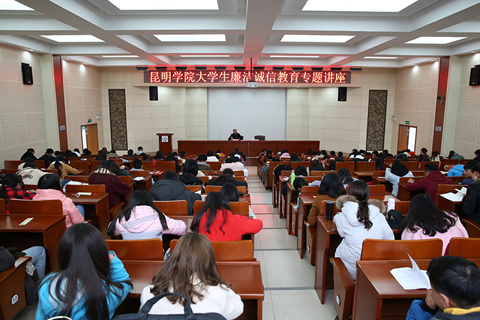 讲座由学校纪委副书记、监察处处长陈开祥主持。学校纪委办公室(监察处)全体人员,学校廉诚学社全体同学和相关院系辅导员共计200余人到会聆听。