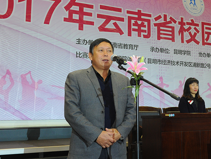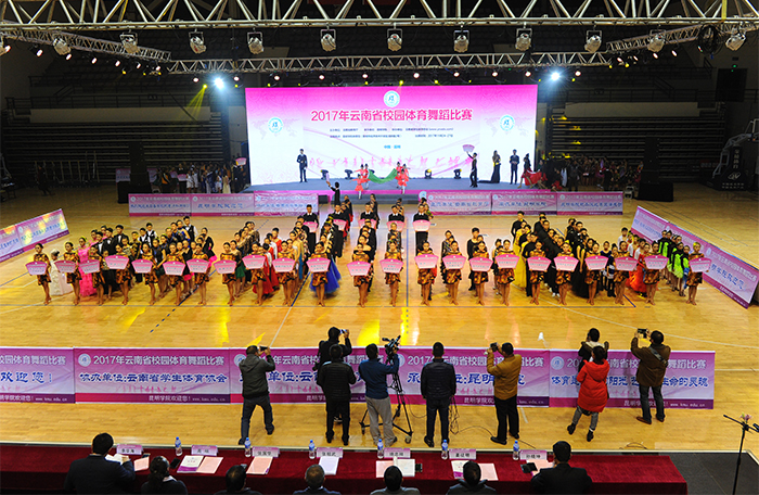 11月25日至26日,由云南省教育厅主办、德赢VWIN官方网站承办、云南省学生体育协会协办的2017年云南省校园体育舞蹈比赛在德赢官网完美举行。来自全省50余所学校近2000余名参赛选手在多个舞种上展开激烈角逐,选手们通过创意的舞蹈竞技和表演,用体育舞蹈来展示当代学生的活力与风采。 省教育厅体卫艺处处长、省学生体育协会秘书长徐忠祥出席开幕式并宣布“2017年云南省校园体育舞蹈比赛”开幕,学校党委副书记张祖武代表承办方致欢迎辞,省学生体育协会会长姜征明、副会长张国华等领导参加开幕式。