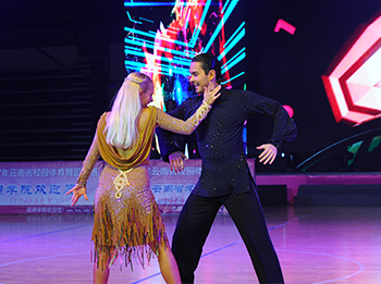 田应娟总裁判长介绍说,本次比赛是云南省学生体育协会体育舞蹈专业委员会成立后的第八个年度赛事。大赛设有拉丁舞、标准舞两个类别,伦巴、恰恰、牛仔和华尔兹、狐步、探戈等十个舞种。参赛选手来自全省大、中、小学校和幼儿园,近4000人次,规模逐年扩大。校园体育舞蹈的技术、水平大幅提高,表演舞形式多样。最大的亮点是开幕式节目表演将舞蹈和情景融入到了一起,既有我省选手的同台表演,又有国际高水平职业体育舞蹈专家表演;节目既保持了体育舞蹈的元素,又创新融入了其他艺术文化元素;是一场艺术欣赏会,更是一堂爱国主义教育课。整个开幕式表演异彩纷呈、陶冶情操、洗练志趣。 开幕式由德赢VWIN官方网站体育学院院长孙晓坤主持。参加开幕式的还体育学院党总支副书记严春梅、副院长周明和社会各界人士近5000余名。