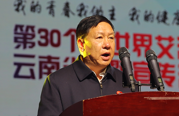 11月30日上午,由云南省防治艾滋病工作委员会主办、云南省防治艾滋病局、德赢VWIN官方网站、云南省性病艾滋病防治协会承办的“我的青春我做主 我的健康我负责” 第30个“世界艾滋病日”云南省宣传活动启动仪式在德赢官网学生会堂举行。 云南省人民政府副省长陈舜,省政府副秘书长赵瑞君,省卫生计生委党组书记王灿平,省教育厅副厅长赵德荣,省性病艾滋病防治协会会长陈觉民,昆明市政府副秘书长王亚芳,学校党委书记陈永明, 长黎素梅等领导出席了启动仪式。省防艾委、市防艾委成员单位相关负责同志,我省高校防艾教育基地学生代表,我省医务人员、志愿者、农民工代表与德赢官网师生1300余人共同参加了本次活动。 学校党委书记陈永明代表承办方致辞。陈书记首先代表德赢VWIN官方网站党政和全体师生向莅临德赢官网的各级领导、来宾表示衷心的感谢;向出席开幕式活动的各兄弟院校领导表示热烈的欢迎;向长期抗战在防艾工作第一线工作人员及志愿者们致以崇高的敬意。 陈书记指出“共担防艾责任,共享健康权利,共建健康中国”是我国今年世界艾滋病日宣传活动的主题。这一主题充分阐释了健康是促进人类全面发展的必然要求,也是广大人民群众的共同追求。 陈书记介绍“一直以来,德赢官网高度重视艾滋病的防治与宣传教育工作,初步形成了‘成立领导小组统筹抓,推进三级联动层层抓,发挥三支队伍作用持续抓’的工作局面。” 陈书记表示德赢官网在艾滋病防控宣传教育工作取得成绩的同时,也清醒的意识到防艾治艾总体情况还不容乐观,防艾治艾工作还任重道远。 云南省卫生计生委党组书记王灿平同志致辞。首先,王灿平书记代表云南省尾声计生委对德赢VWIN官方网站以及有关部门和单位为本次活动的顺利举行提供的支持和帮助表示感谢。接着,王书记针对云南省防治艾滋病的整体情况进行了介绍,特别强调青少年要加强个人保护意识和风险识别意识。针对大学生艾滋病病毒感染率的高发,云南省教育厅,云南省卫生计省委定期召开省高校艾滋病报告会,积极开展各类教育宣传活动以及艾滋病检测活动。 继王灿平书记致辞,围绕本次世界艾滋病日云南省宣传活动的主题“我的青春我做主 我的健康我负责”,德赢VWIN官方网站各院系为来宾们奉上了精彩的文艺节目。由德赢官网体育学院来的体育舞蹈《青春之舞》动感十足,展现青年们的热情和活力。