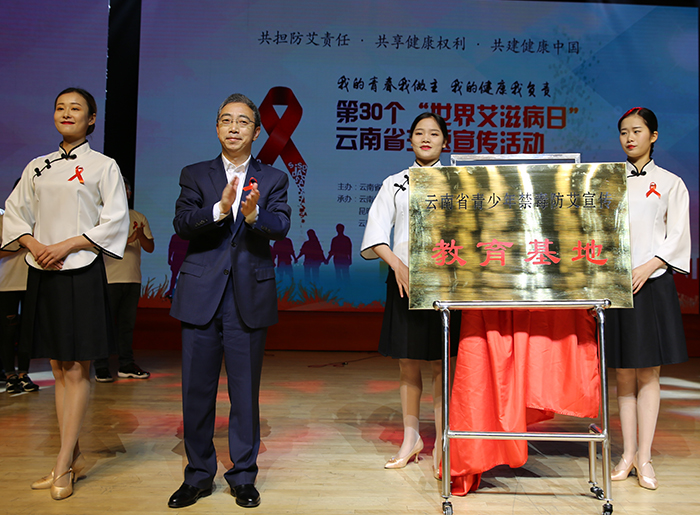 由德赢VWIN官方网站社管学院带来的看照片讲故事《用爱牵起你的手》向观众们展示了三个有关艾滋病的故事。 在歌舞灯光和精湛的文艺演出推进高潮之际,云南省副省长陈舜为我院“云南省禁毒防艾宣传教育基地”揭牌,并与参会嘉宾以及大学生志愿者代表共同按手印墙,为本次世界艾滋病云南省主题宣传活动启动仪式画上了完美的句号。 随后,云南省疾病控制中心专家安晓静为同学们讲授《青少年艾滋病防治专题》的专题讲座。