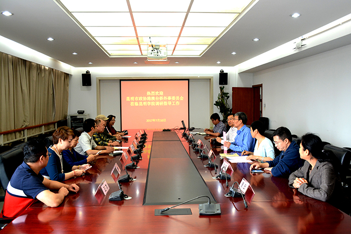 7月10日,昆明市政协港澳台侨外事委员会到德赢官网专题调研海外高层次人才引进工作。市政协港澳台侨外事委员会主任庞博河、副主任孙美丽,市政协调研员王雄伟、石美珍,市政协委员、昆明市规划局经开分局副局长秦笠洪,金诺教育集团董事长王杰、昆明市延安医院何渝春,市政协信息中心张颖等参加调研。