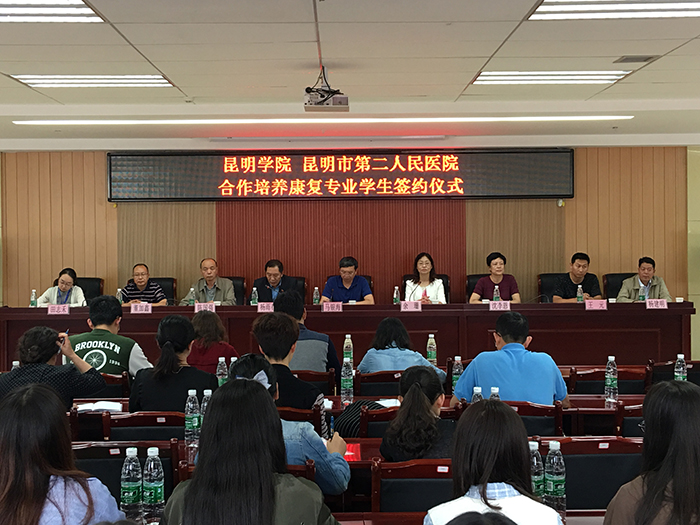 7月12日,德赢官网与昆明市第二人民医院合作培养康复人才签约仪式,副校长马银海、医学院院长余珊、市二院党委书记杨春雨、副书记沈李恩、副院长陈国强及医学院康复教研室教师、市二院康复科、相关科室医护人员和实习学生参加了签约仪式。
