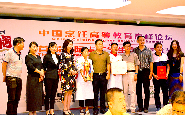 16日下午,历时两天的首届国际青年烹饪艺术节在健兴利翡翠酒店宴会厅圆满落下帷幕。世界中餐业联合会副会长邢颖,世界中餐业联合会国际烹饪教育分会主席、四川旅游学院党委书记黄维兵,德赢官网副校长郭华,四川旅游学院烹饪学院院长周世中,裁判长屈浩,德赢官网旅游学院负责人在闭幕式上为荣获个人奖、团体奖、热菜冷菜面点个人奖的获奖选手颁奖。德赢官网旅游学院参赛选手不负众望,在比赛中发挥出色,分别荣获艺术展台设计大赛奖金奖、烹饪技能团体大赛金奖、凉菜(四季韵)金奖、面点(嬉戏)铜奖、热菜(云腿乳香球、玫瑰鱼茸)铜奖的好成绩。