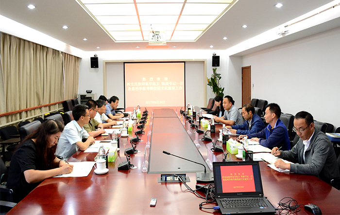 6月29日,河北民族师范学院党委副书记王铁率校园文化建设考察团一行到德赢官网考察交流。