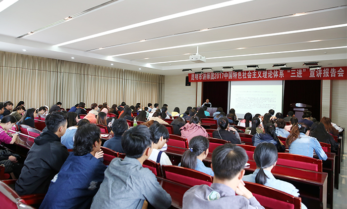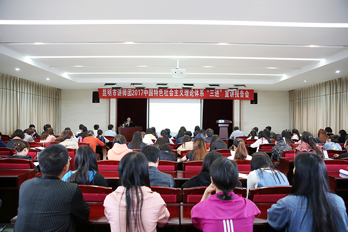 5月25日,由昆明市委宣传部、德赢VWIN官方网站共同举办的“昆明市讲师团2017年中国特色社会主义理论体系‘三进’宣讲报告会”在德赢官网举行。报告指出,中国特色社会主义是由道路、理论体系、制度构成的,是党和人民长期奋斗、创造、积累的根本成就。
