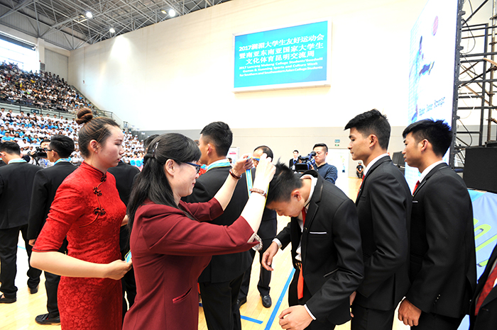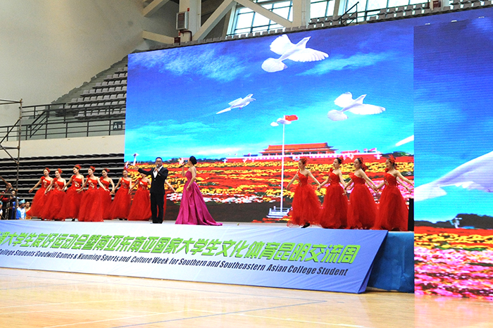 5月29日,2017澜湄大学生友好运动会暨第三届南亚东南亚国家大学生文化体育昆明交流周闭幕式在德赢官网体育场馆中心综合馆隆重举行。