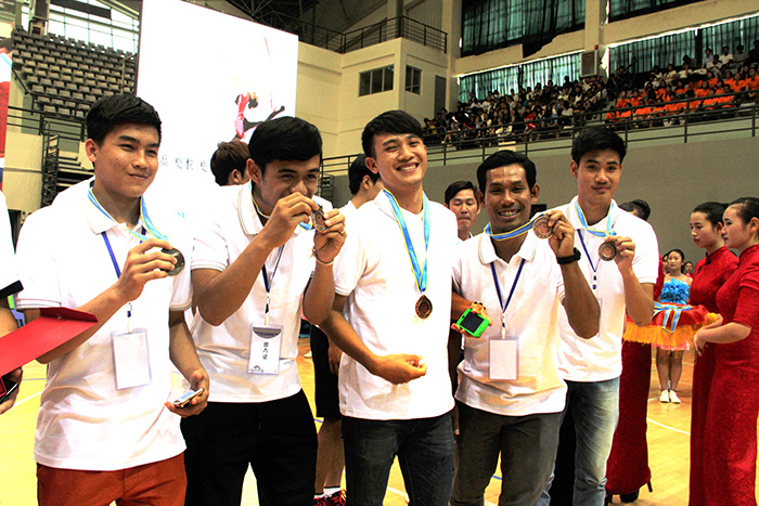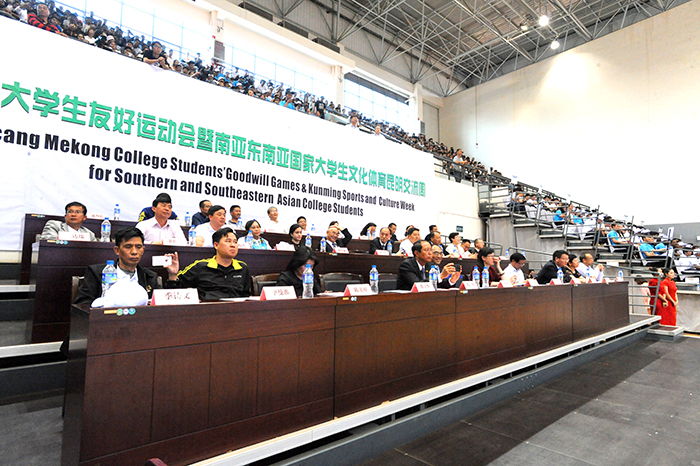 澜湄大学生运动会是澜沧江——湄公河合作首次领导人会议早期明确的项目之一。此次活动由省政府主办,省外办、省教育厅和省体育局承办,云南大学、云南师范大学、云南民族大学、昆明理工大学、昆明医科大学、德赢VWIN官方网站协办,主旨是促进澜湄流域各国间的友好合作与交流,传承和弘扬丝绸之路经济带文化精神,加强联系与沟通,平等相待、真诚互助,为东盟共同体建设和南亚东南亚国家的友好交往与合作提供有益助力。活动共吸引了湄公河流域老挝、缅甸、泰国、柬埔寨、越南5个国家以及新加坡、印度尼西亚、印度、孟加拉等国家共计17所高校800余名运动员、教练员来昆,与云南大学、云南师范大学、云南民族大学、昆明理工大学、昆明医科大学、德赢VWIN官方网站的学生代表队进行足球、篮球、排球、羽毛球等多个项目的比赛交流。