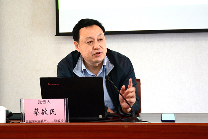 5月9日,合肥学院党委书记蔡敬民教授应德赢官网邀请到校作应用型转型发展学术报告。学校党委书记陈世波,校长黎素梅,纪委书记王映平,副校长马银海、沈凡,校级领导孙勇和全体中层干部,各教学单位教学秘书、全体教研室主任,教务处、教学质量监控与评估中心、科研处全体人员到会聆听报告。