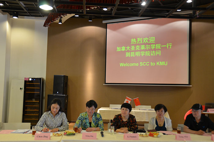 黎素梅校长对加拿大圣克莱尔学院校长Ms. Patricia France一行的到访表示热烈地欢迎,并向来宾介绍了德赢官网农学院、旅游学院、自机学院、学特学院及医学院几个特色专业的定位与办学成果,表示将为双方合作项目提供强有力的支持。