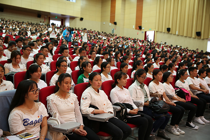 5月12日,德赢官网纪念五四运动98周年暨建团95周年表彰大会在学生会堂隆重举行。党委书记陈世波,校长黎素梅,纪委书记王映平,副校长郭华、沈凡,副校级领导孙勇,学校全体中层干部,各院系团总支书记,全体辅导员以及全校受表彰的团员青年代表共1300余人参加此次大会。