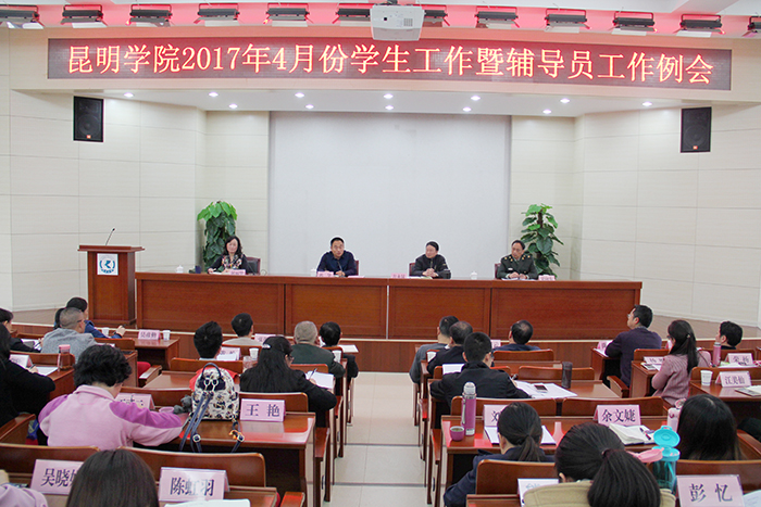 保卫处、武装部、学生处分别通报和安排布置了近期学生工作。保卫处通报了近期昆明市创建“文明城市”工作中,对德赢官网西门外大学路占道经营、摆摊设点等环境治安整治情况及相关要求;武装部通报了德赢官网2016年大学生征兵工作情况,传达了全省2017年征兵工作会议精神,对德赢官网2017年的征兵工作进行了安排布置,下达了征兵任务;学生处对德赢官网2017年省级辅导员年度人物和大学生年度人物的评选推荐、辅导员学习全国高校思想政治工作会议精神、2016-2017学年“优良学风班”创建中期检查、“文明宿舍、特色宿舍、党员示范宿舍”创建、近期评奖评优等情况进行了通报和说明,对近期将组织的“看照片讲故事”大赛、“中华优秀文化”知识竞赛、校园安全教育月相关活动及校园网贷、2017届毕业生教育、校内外辅导员培训、留学生教育管理、五一小长假学生的安全教育管理等工作进行安排布置并提出相关要求。