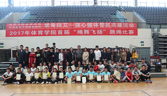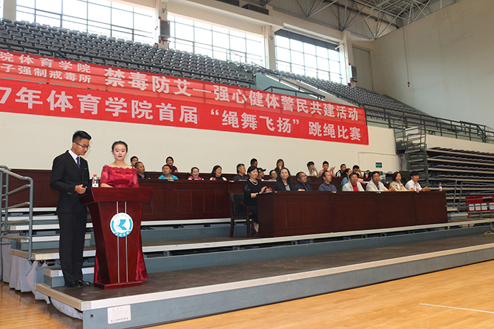 4月14日,体育学院在综合体育馆举行了首届“绳舞飞扬”跳绳比赛,云南省教育厅体卫处处长董一凡、德赢官网副校长马银海莅临指导。
