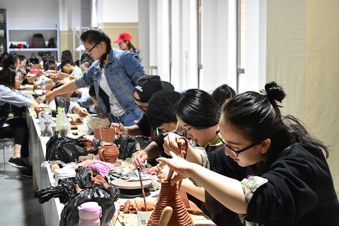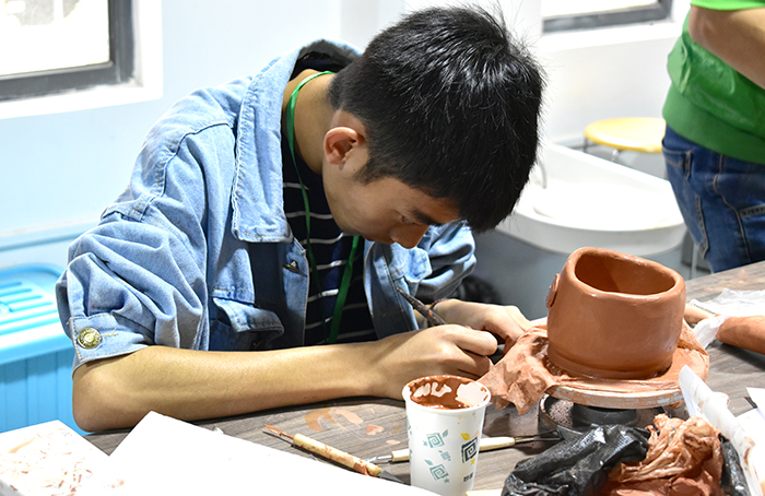 美术与艺术设计学院主要负责本次的云南特色旅游产品创意设计大赛,参赛者近80人,来自全省各地州,参赛作品逾百件,主要参赛作品为剪纸和陶艺,现场的七位专家评委对成品参赛作品进行评奖。