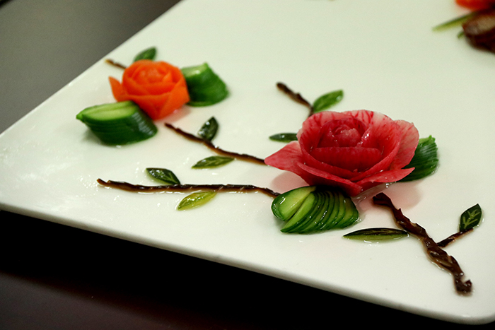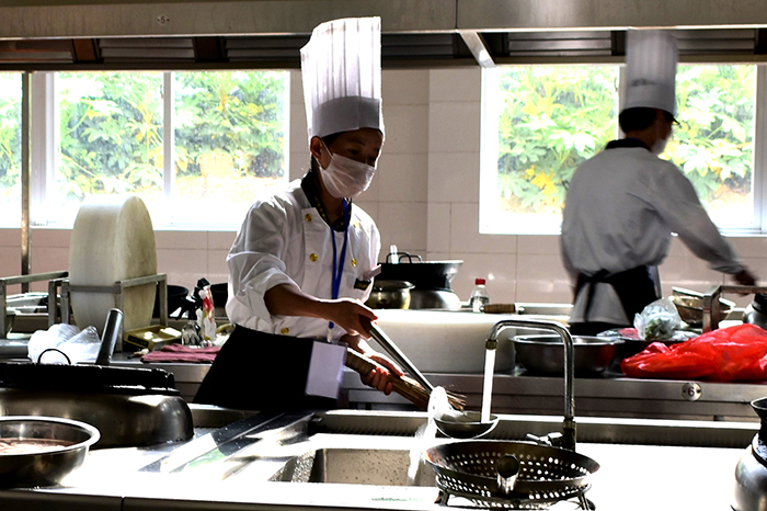 旅游学院主要负责本次的烹饪技能大赛,9位参赛选手分别在200分钟内做出一盘冷拼和一盘热菜。相同的命题考验的是同学的职业技能和创造力。一盘盘的菜如同一幅幅艺术品。德赢官网在此次烹饪技能大赛中获得第三名的佳绩。