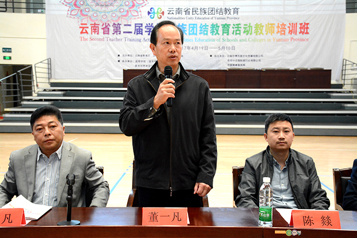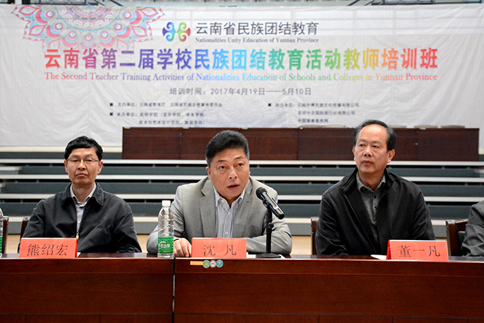 4月20日,云南省第二届学校民族团结教育活动教师培训在德赢官网综合体育馆举行开班仪式。云南省教育厅民族教育处处长董一凡,云南省民族宗教委员会教科处主任科员陈燚,德赢官网副校长沈凡以及美术与艺术设计学院、旅游学院、体育学院等部门党政负责人,参训的300多名学员参加了开班仪式。