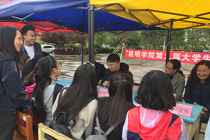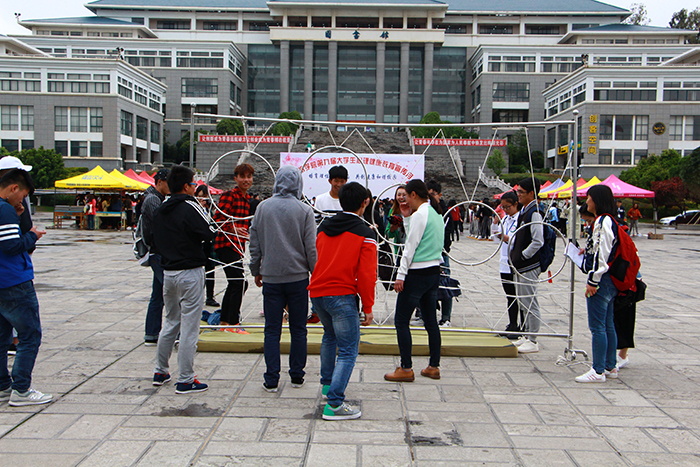 启动仪式上,还展示了多项心理教育活动,丰富多彩的地雷阵、过电网、千足虫、突破重围、无比信任等心理竞赛游戏深受同学们的青睐,同学们组成团队跃跃欲试;制作纸玫瑰花,赠予他人,手留余香;心理答疑现场,老师和同学们亲切交谈;现场还有许多志愿者向同学们宣传中心的公众微信号……聂耳广场洋溢着同学们的欢声笑语和青春激情。