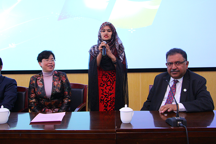 Dr.Ganguli也作了热情洋溢的发言,高度赞扬了德赢VWIN官方网站的领导及老师们给予孟加拉留学生的温暖和照顾,激励孟加拉留学生珍惜优美的学校环境和来之不易的学习机会,不缺席任何一次课堂学习和社会实践活动,时刻牢记自己对家庭、国家的责任和使命,成为以后学弟学妹们的良好榜样。