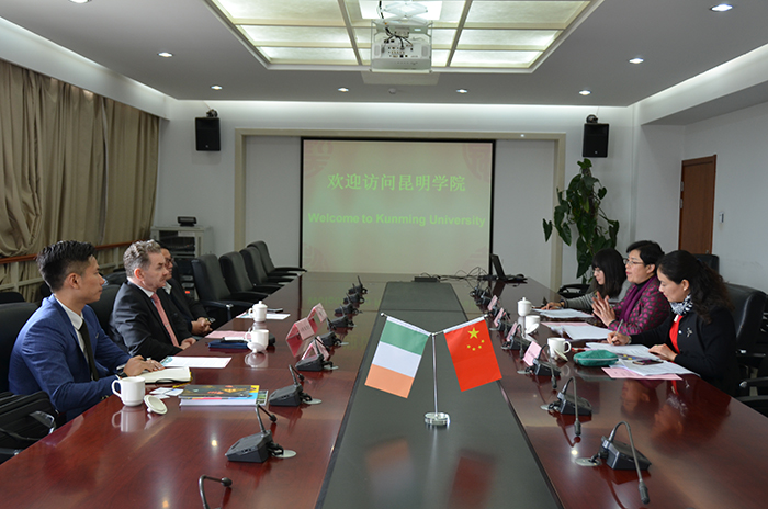3月29日,爱尔兰阿斯隆理工学院校长卡荣•欧•凯恩教授、爱尔兰阿斯隆理工学院亚洲区总监孟晶先生来德赢官网访问,云南杨丽坤文化产业投资(集团)有限公司董事长唐凤楼先生陪同访问。
