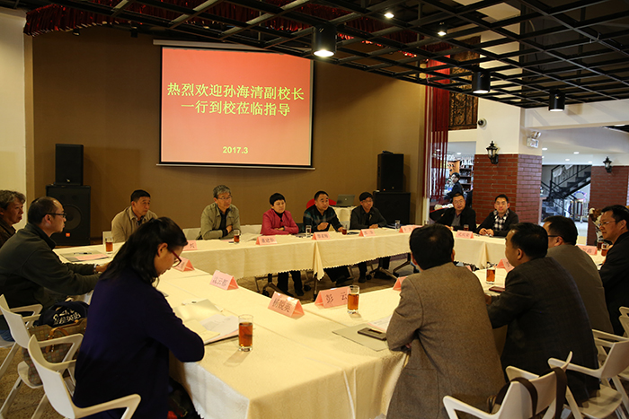 德赢官网校长黎素梅,副校长郭华、董建华一同接待了来宾,对孙海清副校长一行来访表示欢迎,并介绍了学校校园规划建设、重点实验室建设、特色专业建设和人才培养等基本情况。