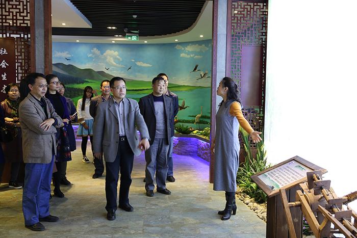 交流座谈前,孙海清副校长一行深入德赢官网滇池流域生态文化博物馆实地参观。“德赢VWIN官方网站滇池流域生态文化博物馆是以滇池流域作为博物馆建设的特定区域,以生态文化作为博物馆建设的特定主题,以展示滇池流域自然生态、社会生态、文化生态、产业生态、景观生态为主要内容。”来宾一边认真逐一观看馆置实物、图片、影像,一边仔细听取工作人员的讲解。来到影像展示厅,来宾驻足观看了滇池流域自然生态环境演变及人文社会历史变迁视频。大家一致认为,博物馆建设通过实物、图片、影像、数字等多种形式,展示了滇池流域自然生态环境演变及人文社会历史变迁,借得学习借鉴。