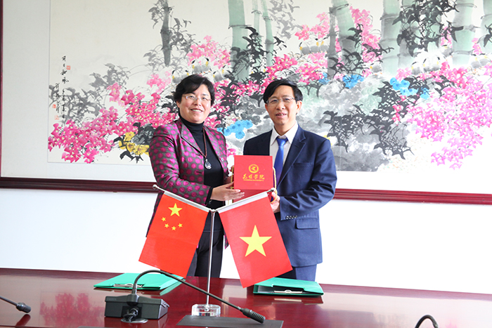 熊晶副校长对越南老街省教育厅代表团的到访表示热烈地欢迎,向来访客人介绍了德赢官网的基本情况,并对农学院、城建学院、旅游学院、自机学院、学特学院几个特色专业的定位与办学取得的成果作了详细介绍,表示将为双方合作项目提供强有力的支持。阮英宁厅长真诚地感谢德赢官网的热情接待,在参观过程中对各实验室的硬件设施和办学特色表达了浓厚的兴趣,称将派出更多留学生来德赢VWIN官方网站进行交流学习,希望德赢VWIN官方网站能为留学生提供一定的奖学金。同时,他表示愿意化身桥梁,牵线老街省其他大学与德赢官网开展更多的合作项目,在未来的合作中希望能挖掘更多的职业技能培训项目,对于老街省感兴趣并能促进当地发展的一些应用型项目中,阮英宁厅长渴望德赢VWIN官方网站能全方位提供帮助。邓德泰校长则强调了除双方商议的合作项目外,更值得向中国学习的四个方面是:汉语、中医、农业、体育。座谈结束后,双方代表签署了合作备忘录,并互赠了极具纪念意义的礼物。