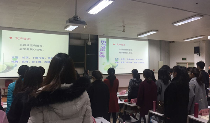 此次培训主要围绕增强教师的教学技能方面开展,旨在帮助新进教师进一步熟悉教学要求和提升教学能力。本次培训第一讲邀请了人文学院张芹副教授讲授备课和说课。张老师通过说文解字介绍了备课和说课的内涵,讲授了说课的基本环节,并要求参加培训的老师准备一堂课的说课稿;第二讲邀请了人文学院非云华副教授讲授教师口语艺术。非老师采用讲授与练习相结合的方式,带领各位老师进行了吐字归因训练、用气发声训练、口语表达训练等,阐述了导入语、讲授语、提问语和结束语的作用和要求。接着,学以致用,非老师请参加培训的老师进行课堂讲授练习并邀请了教师代表上讲台演示。