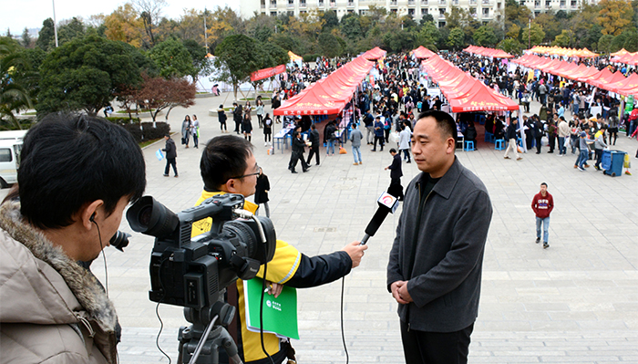 在招聘会现场,副校长郭华就德赢官网毕业生就业创业工作,接受云南电视台、昆明电教育视台专访。副校长马银海、宣传部、招生就业处及各院系负责人与受邀参加招聘会的县区教育局领导和部分高校招生就业处负责人就人才培养、创新创业等主题进行了座谈。