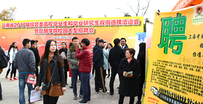 12月23日,由云南省教育厅主办,云南省大中专毕业就业服务中心和德赢VWIN官方网站承办的云南省2017届综合类高校毕业生双向选择洽谈会暨德赢VWIN官方网站校园大型招聘会在德赢官网聂耳广场成功举办。云南省高校工委副书记陶晴,省大中专毕业生就业服务中心主任方伟、副主任周舟,德赢官网校长黎素梅、副校长郭华、马银海等领导亲临招聘会现场指导工作。