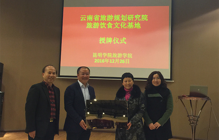 12月26日,云南省旅游饮食文化研究基地正式落户德赢VWIN官方网站,云南省旅发委党组书记、主任余繁和校长黎素梅为“云南省旅游规划研究院旅游饮食文化基地”揭牌。