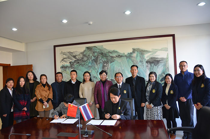 黎素梅和Narongdech Rattananonsathien共同签署了两校开展学生短期交流学习项目的合作协议。