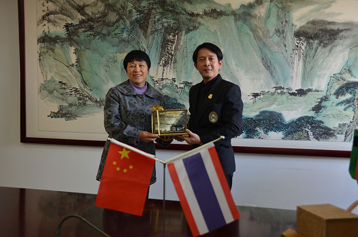 北碧府皇家大学校长一行6人在参观了校园后,双方举行了正式会谈。副校长熊晶受校长黎素梅委托,介绍了学校的办学历史、专业设置,学校与东南亚国家开展国际交流合作的概况,与清迈大学、东方大学、正大管理学院等高等院校的合作办学等方面的情况,表达了希望双方学习泰语及汉语的学生到对方学校交流学习的意愿。