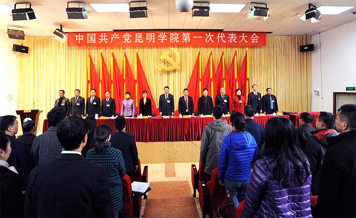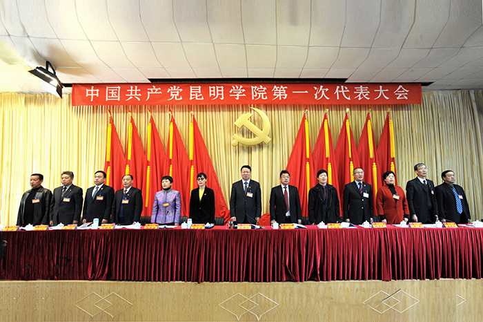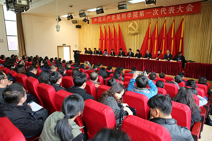 博文楼附楼报告厅气氛庄重、热烈,主席台后幕正中是镰刀和锤头组成的金色党徽及上方“中国共产党德赢VWIN官方网站第一次代表大会”红色会标醒目而催人振奋。云南省委高校工委委员、省教育厅党组成员、省招生考试院党委书记王永全,昆明市委常委、市委组织部部长鲁斌,昆明市副市长王建颖应邀出席开幕式。大会主席团执行主席黎素梅、陈世波、张祖武、王映平、熊晶、郭华、董建华、沈凡、孙勇、李翔在主席台就座。