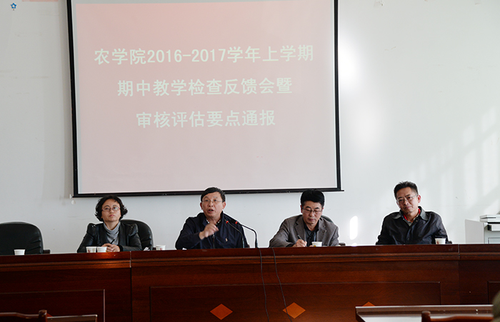 11月25日,农学院召开全体教职工2016-2017学年上学期期中教学检查反馈暨审核评估要点通报会议,副校长马银海亲临会议并指导工作。