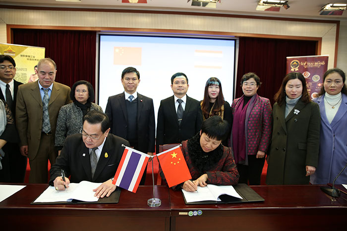 11月29日,中泰职业教育交流会在昆举行。下午会间,中泰职业教育交流会的各位代表访问德赢官网,并与德赢官网签署3项合作协议。德赢官网校长黎素梅分别与泰国工业部食品研究所所长勇武•韶华蓬,泰国馆集团有限公司董事长李文莉和昆明滇池泛亚文化研究学会执行会长龙东林等签署合作协议。泰王国驻昆总领事鹏普•汪批塔亚、泰王国驻昆商务领事娜查敦出席访问交流会,并见证合作协议签署。