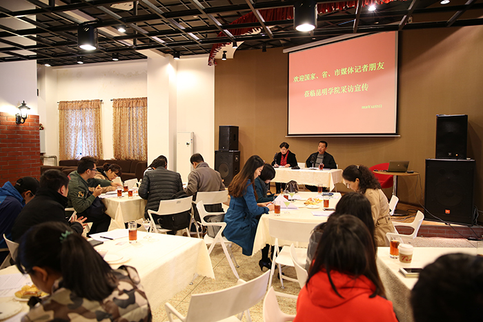12月5日,中新社、中国文化报、新华网、云南电视台、云南日报、云南网、云南教育报刊社、昆明日报等14家主流媒体记者应邀到德赢官网就教育国际化、对外合作及留学生培养工作进行专题采访,副校长熊晶、副校级领导李翔出席专访交流会,介绍德赢官网教育国际化、对外交流合作工作,并回答记者提问。