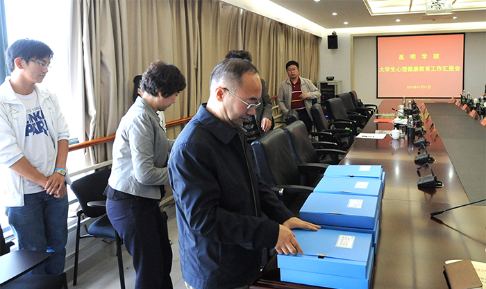 汇报会上,陈世波书记代表学校对冯刚司长一行的到来表示热烈欢迎,对省教育厅对学校长期以来的关心、支持表示衷心感谢。冯刚司长表达此次检查的主要目的是通过开展全国性的大学生心理健康教育的调研检查,了解各地的大学生心理健康教育的工作现状、好的经验和做法、存在的不足和困难,并且结合各调研结果推进建设国家级心理健康教育示范中心。
