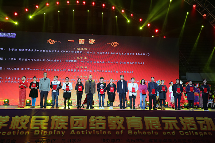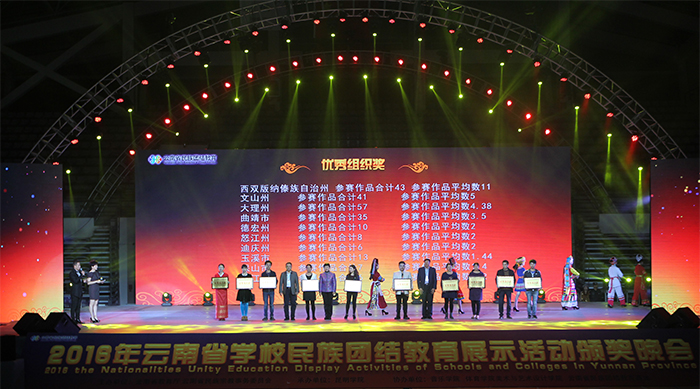 参加颁奖晚会的领导还有云南省教育厅民族教育处处长董一凡、云南省民族宗教事务委员会教科处处长杜忠初,德赢官网副校长董建华、马银海、沈凡和十六个州、市教育局、在昆高校、地州高校、参演单位的领导。