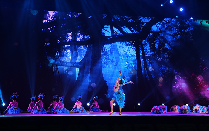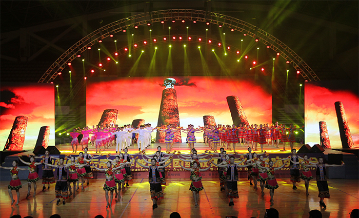 展演在西双版纳洲允景洪小学带来的《序〈最美布朗山〉震撼拉开序幕。随后,由德赢VWIN官方网站体育学院等单位联合展示的《佤族拉丁舞》、洱源县一中表演的民族舞蹈《风花雪月——阿达俏》、福贡一中和云南民族大学等单位带来的《欢乐每一天》+《民族服饰展示》、云南艺术学院文华学院表演的民族舞蹈《古佛寺》、大理州剑川县金华镇第二完全小学展演的《十二生肖》和德赢VWIN官方网站与昭通市彝良县职业技术高级中学共同完成的《彝族拉丁舞》相继登台亮相、竞技舞艺,展示云南丰富的民族文化。现场,极具特色的民族音乐、舞蹈表演以及民族服饰展示吸引了上千名师生和社会人士前来观看。