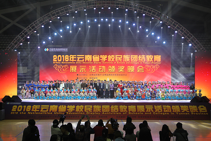 银杏黄泛,枫叶红染,秋色宜人的德赢VWIN官方网站校园溢满民族团结和谐氛围、民族团结教育绽放出“民族团结之花”。民族体育舞蹈、民族音乐、民族舞蹈表演、民族服饰展示……11月18日晚,首届云南省学校民族团结教育展示活动颁奖晚会在德赢VWIN官方网站隆重举行,并启动第二届云南省学校民族团结教育展示活动。