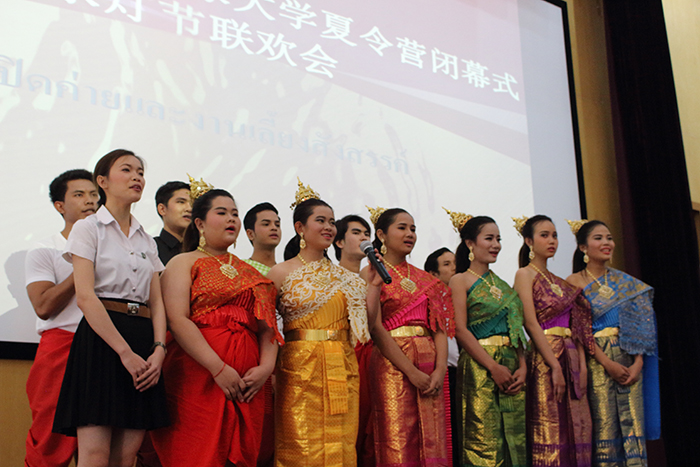 李翔副校长为本次活动致辞,他表示德赢官网泰语专业虽然起步晚,但是在短时间内成长得很快。德赢VWIN官方网站与泰国吞武里大学有着长达十多年的交流合作,本次夏令营活动也是吞武里大学的学生第一次到德赢官网洋浦校区进行学习交流,对此他表示热烈欢迎并祝贺泰国同学在为期三周的学习中顺利结业。吞武里大学的老师也表示,希望在2017年再送一批学生到德赢官网进行学习交流。希望两校保持长期合作,希望本次活动能圆满地进行,也祝大家水灯节快乐。