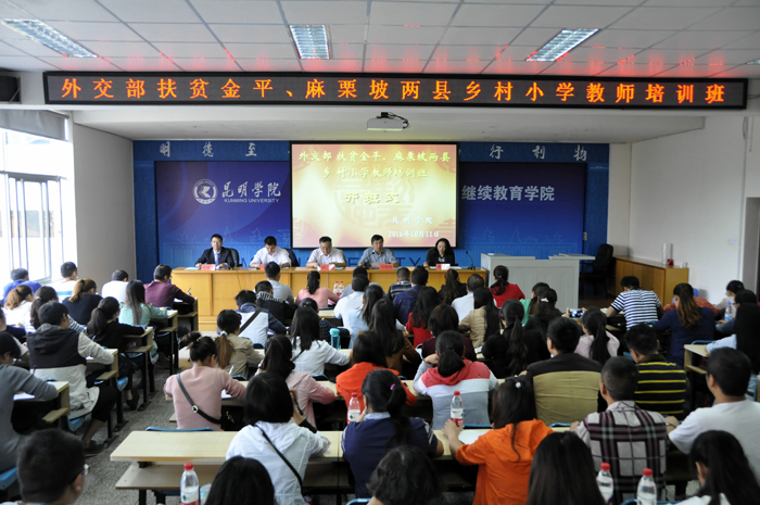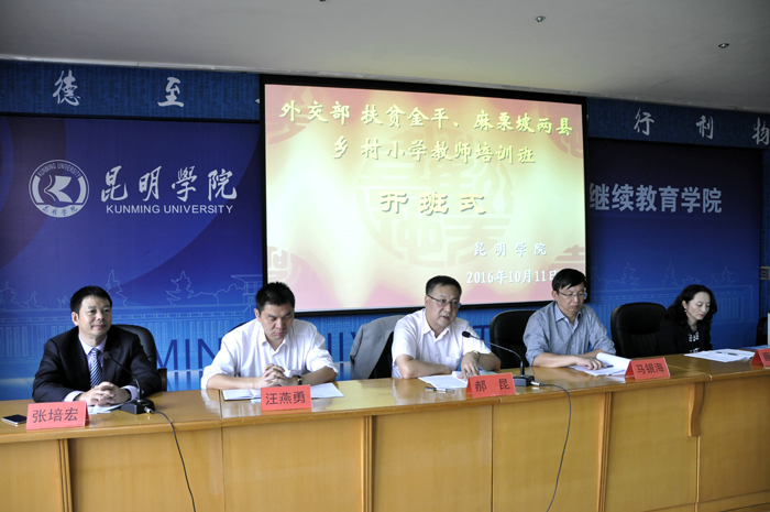 10月11日,2016年外交部扶贫金平、麻栗坡两县乡村小学教师培训班开仪式在德赢VWIN官方网站继续教育学院举行。云南省人民政府外事办公室副主任郝昆、德赢VWIN官方网站副校长马银海、省外办国际交流处处长汪燕勇、省外办人事处副处长蔡秋雁、省外办外事培训中心副主任刘芸出席开班仪式。省政府外事办及德赢VWIN官方网站继续教育学院相关职能部门的同志、金平与麻栗坡两县的100位乡村小学教师一起参加了开班式。开班式由德赢VWIN官方网站继续教育学院主持工作副院长张培宏同志主持。